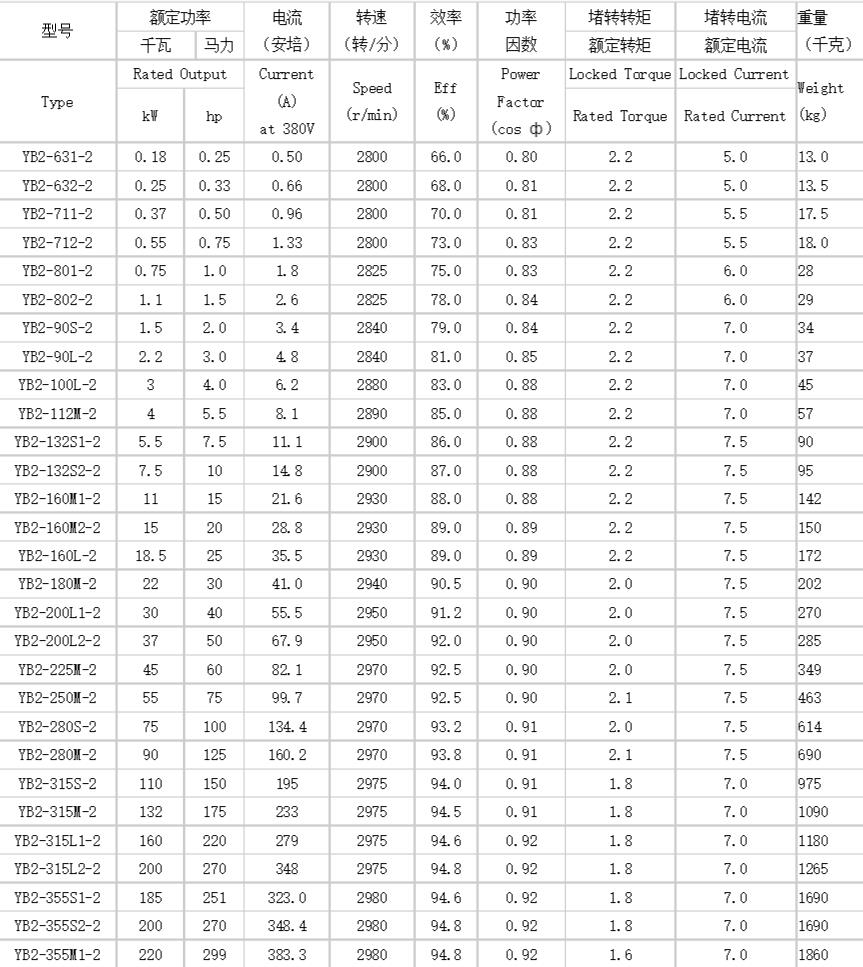 小功率防爆電機主要技術參數(shù)