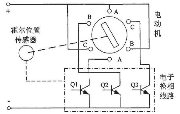 無(wú)刷直流電機(jī)控制電動(dòng)機(jī)定子繞組通電的順序和時(shí)間,功率邏輯開(kāi)關(guān)單元將電源功率分配給定子繞組,使電機(jī)產(chǎn)生轉(zhuǎn)矩?;魻栁恢脵z測(cè)器可以檢測(cè)轉(zhuǎn)子磁極相對(duì)于定子繞組的位置信號(hào),進(jìn)而控制邏輯開(kāi)關(guān)單元的繞組順序和時(shí)間,當(dāng)定子繞組的某一相通電時(shí),該電流與轉(zhuǎn)子磁極相互作用產(chǎn)生轉(zhuǎn)矩,驅(qū)動(dòng)轉(zhuǎn)子旋轉(zhuǎn),再由霍爾位置傳感器將轉(zhuǎn)子磁鋼位置變換成電信號(hào),去控制電子開(kāi)關(guān)線(xiàn)路,從而使定子各相繞組按一定次序?qū)?,定子相電流隨轉(zhuǎn)子位置的變化而按一定的次序換相。由于電子開(kāi)關(guān)線(xiàn)路的導(dǎo)通次序與轉(zhuǎn)子轉(zhuǎn)角同步,因而起到了機(jī)械換向器的換向作用。