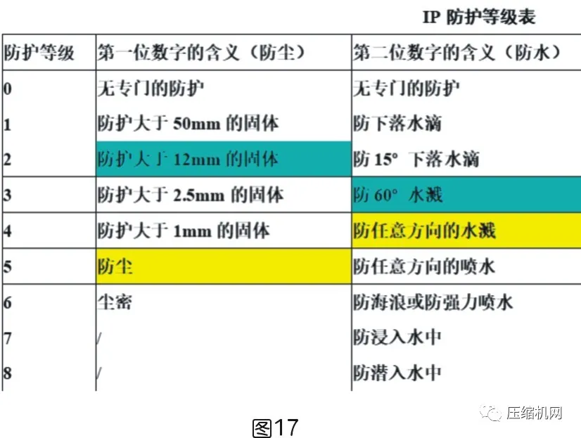 根據(jù)IEC 60034-5標(biāo)準(zhǔn),電動(dòng)機(jī)的防護(hù)等級(jí)表示防塵、防水以及防碰撞的能力,用字母IP以及后面兩位數(shù)字表示。這跟電機(jī)的采購(gòu)成本有關(guān)。數(shù)字越大,成本越高。
