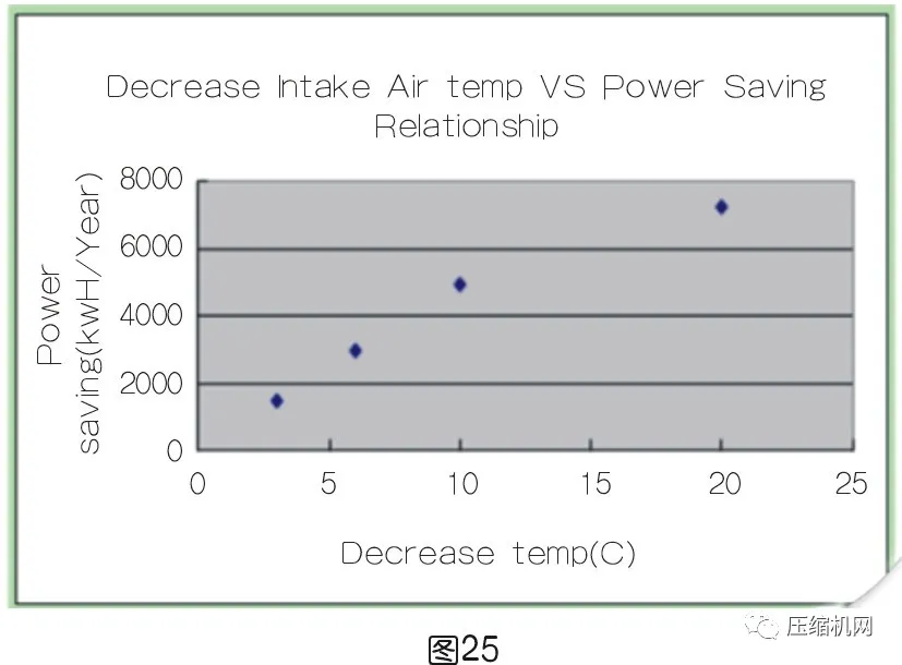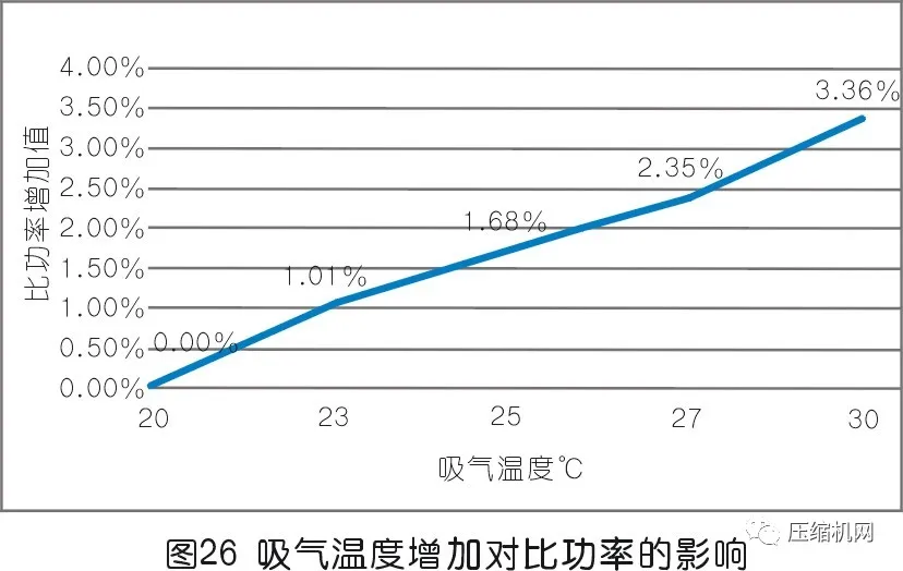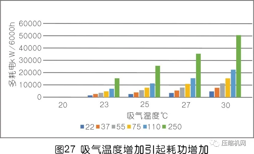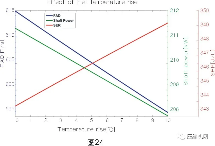 空壓機(jī)進(jìn)氣溫度越高,其耗功也越高;(見(jiàn)圖23)