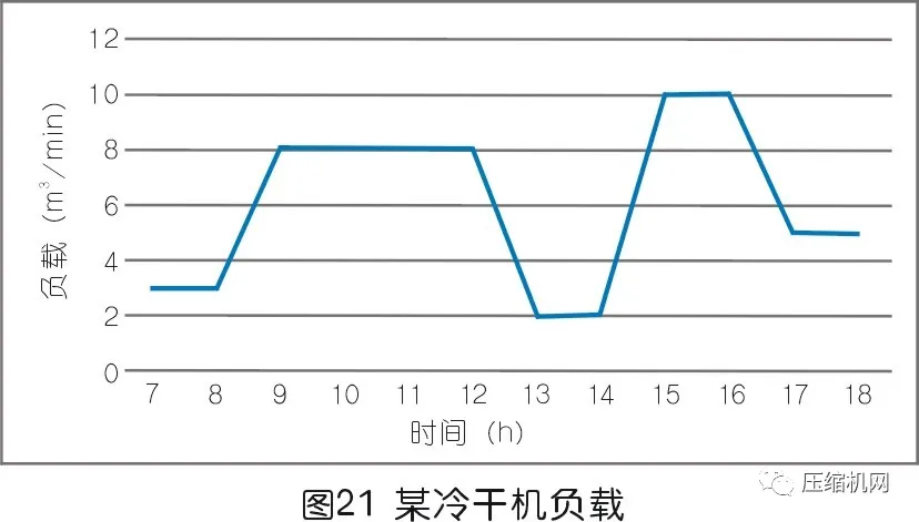 例3,某工廠配置一臺(tái)10m3/min冷干機(jī),一天工作的平均負(fù)載情況如圖19。