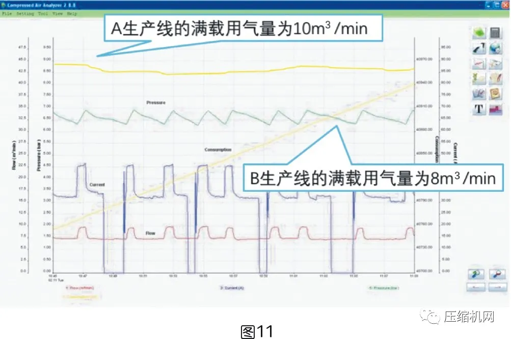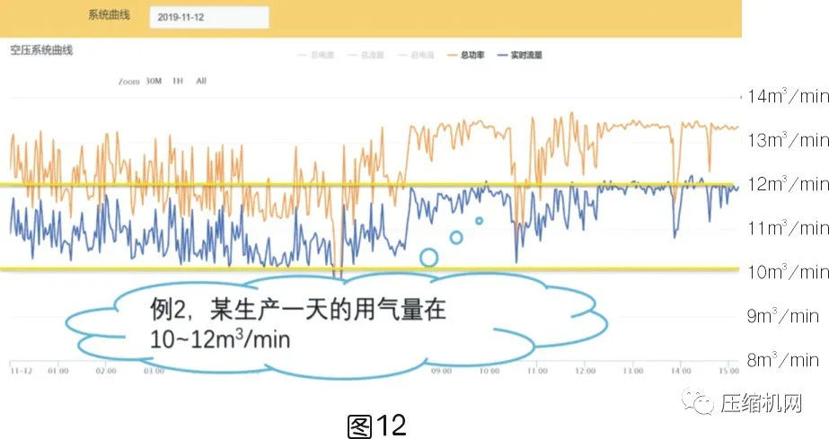 例2,某生產(chǎn)線一天的用氣量在10~12m3/min,見(jiàn)圖12。