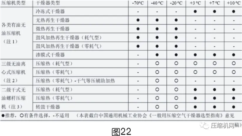 干燥機(jī)的選型原則:能用冷干機(jī)就不用吸干機(jī),再生方式能用電就不用氣,能用熱就不用電。(見(jiàn)圖22)