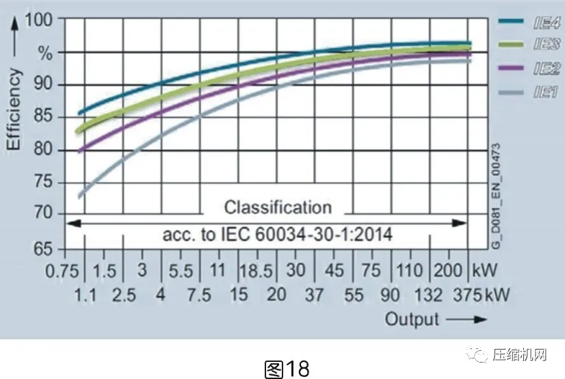 通常工頻空壓機(jī)采用三相異步電動(dòng)機(jī)一般為IE3,變頻空壓機(jī)采用永磁電機(jī)一般為IE4以上;各級(jí)效率η相差1~2%;