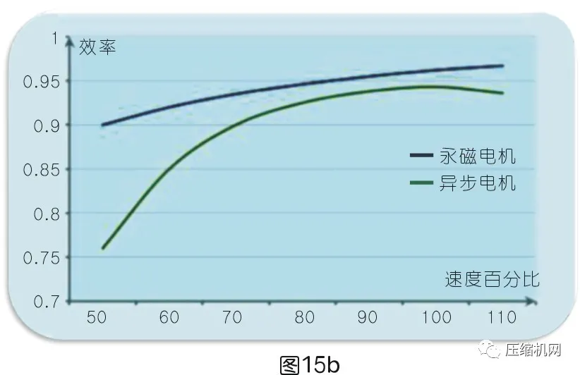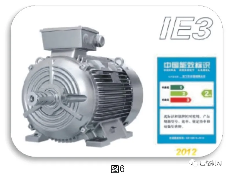 電機(jī)作為空壓機(jī)的主要輸入動(dòng)力,其效率對(duì)于空壓機(jī)節(jié)能也是影響很大。工頻和變頻電機(jī)的采用,在后面的節(jié)能誤區(qū)會(huì)有詳細(xì)描述,圖6。