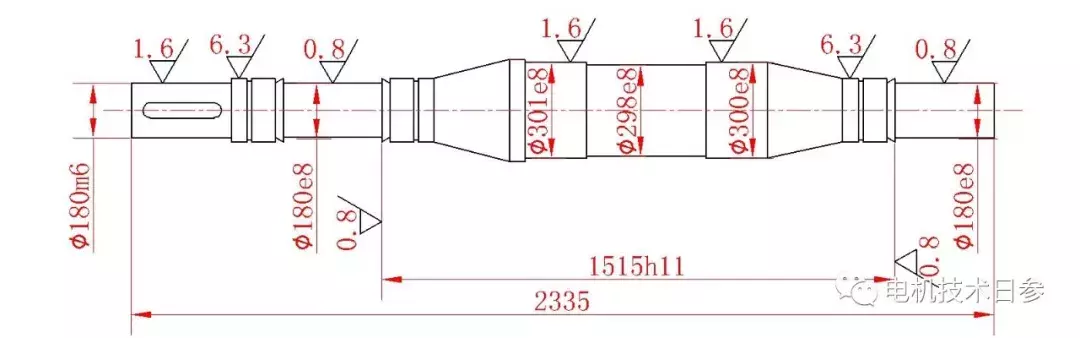 足夠的強(qiáng)度和剛度是電機(jī)軸安全可靠運(yùn)行的前提,特別是大中型電機(jī),應(yīng)根據(jù)實(shí)際工況嚴(yán)格檢查或論證。但是,除此之外,電機(jī)軸結(jié)構(gòu)的可制造性在設(shè)計(jì)電機(jī)軸時(shí)也必須認(rèn)真對(duì)待,這往往被人們所忽視,從而嚴(yán)重影響加工精度和效率。女士參考今天的話題討論,談?wù)勅绾未_定軸的結(jié)構(gòu)和工藝參數(shù)。