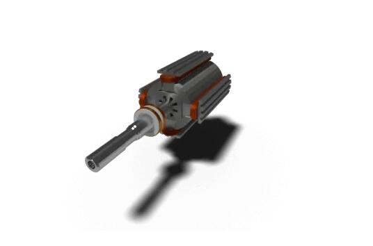 圓柱形轉(zhuǎn)子由高級鎳鉻鉬鋼的高級鍛件的整體鍛件制成。磁極由流經(jīng)繞組的電流產(chǎn)生。它們的極數(shù)較少,因此可用于高速應用。由于它們具有均勻的氣隙,它們還產(chǎn)生較少的噪音和風阻損失。直流電通過滑環(huán)提供給轉(zhuǎn)子繞組。一旦轉(zhuǎn)子繞組被勵磁,它們就會像磁極一樣起作用。
