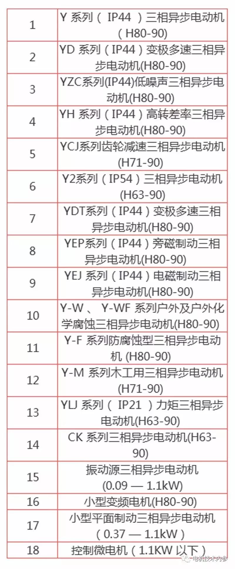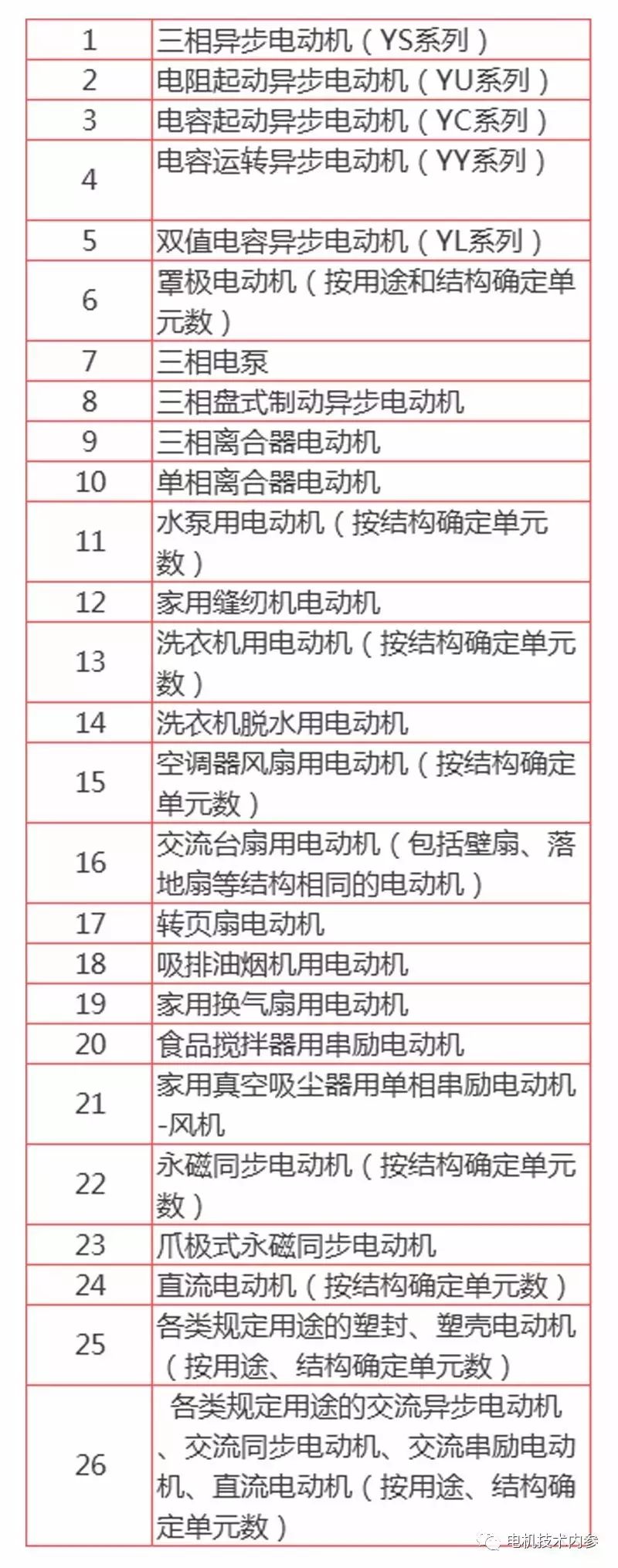 強制認證的CCC電機目錄:低功率電機(僅適用于36V以上1100W以下(同步轉(zhuǎn)速轉(zhuǎn)換為1500 rpm)的產(chǎn)品),具體產(chǎn)品包括: