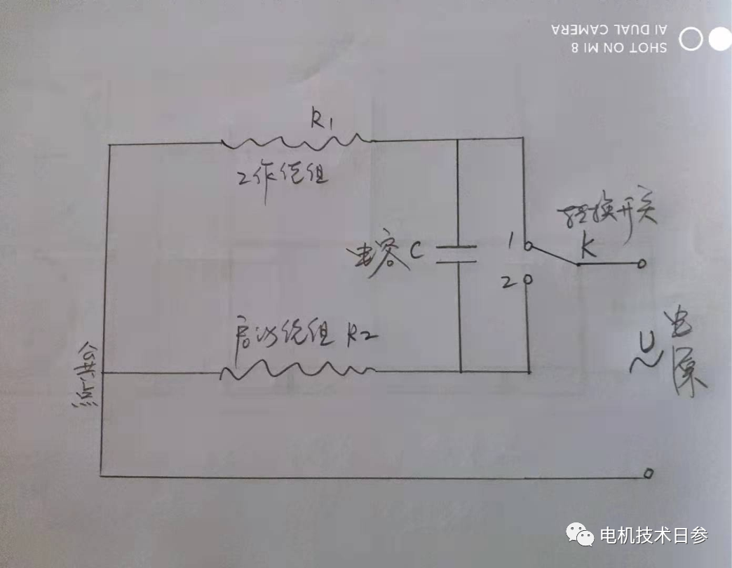 根據(jù)上述理論,下面的正反轉(zhuǎn)單相電機(jī)繞組,是在主繞組與副繞組兩個(gè)功能角色轉(zhuǎn)換條件下進(jìn)行,兩個(gè)繞組的一致性,既保證了不同轉(zhuǎn)向下電機(jī)的性能符合性,同時(shí)也使電容的選擇更簡(jiǎn)單和科學(xué)。是單相電容起動(dòng)雙向旋轉(zhuǎn)電機(jī)繞組工作原理示意圖。當(dāng)開(kāi)關(guān)連接到點(diǎn)1時(shí),R1是工作繞組,R2是起動(dòng)繞組。當(dāng)開(kāi)關(guān)連接到點(diǎn)2時(shí),R2是工作繞組,R1是起動(dòng)繞組。